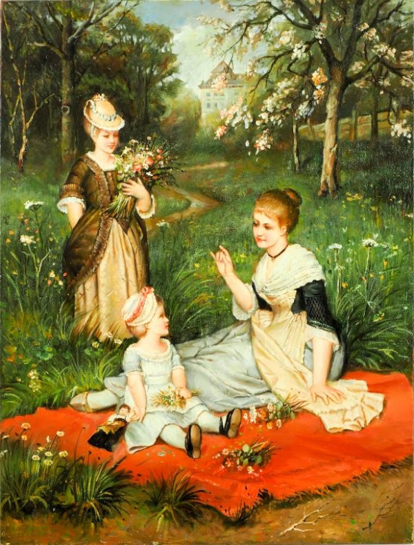 OIL PAINTING ON CANVAS OF AFTERNOON PICNIC TIME