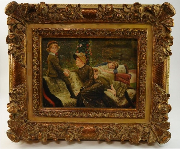 PAINTING OF A MOTHER WITH HER THREE YOUNG CHILDREN