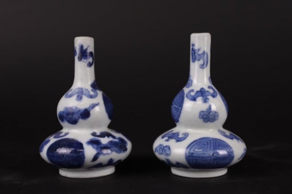 PAIR OF ANTIQUE BLUE AND WHITE DOUBLE-GOURD VASES