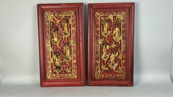 PAIR OF ANTIQUE CHINES CARVED AND GILT WOOD PANELS