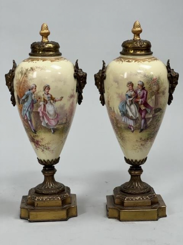PAIR OF ANTIQUE FRENCH SEVRES PORCELAIN VASES