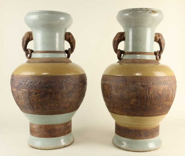 PAIR OF BEAUTIFUL BROWN AND CELADON VASES