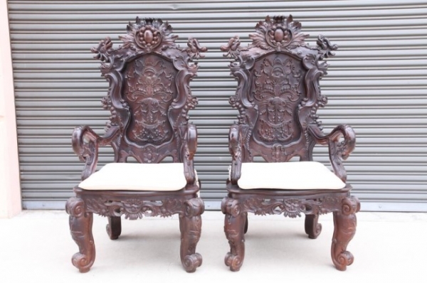 PAIR OF CARVED WOOD DRAGON CHAIRS