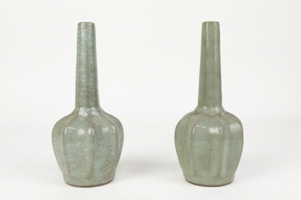 PAIR OF CHINESE CELADON CRACKLEWARE VASES