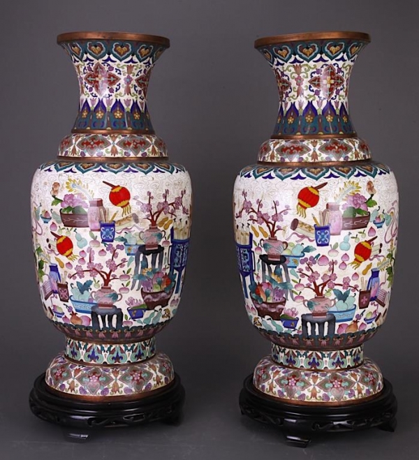 PAIR OF CHINESE CLOISONNE VASES