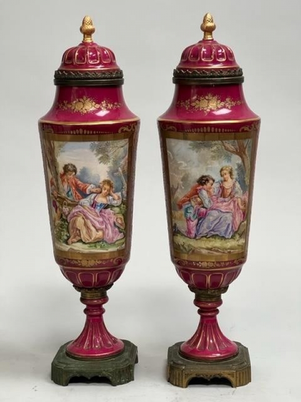 PAIR OF FRENCH SEVRES CRANBERRY RED GROUND VASES