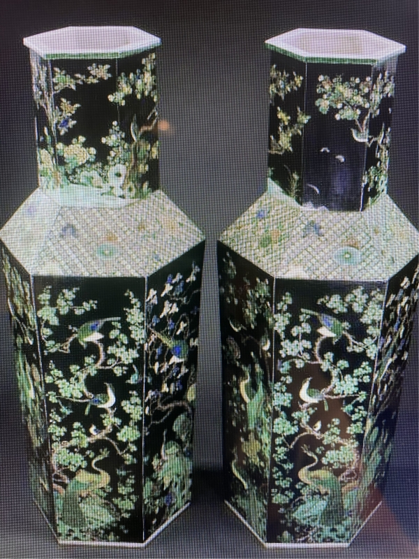 PAIR OF MASSIVE ANTIQUE CHINESE FAMILLE NOIR VASES