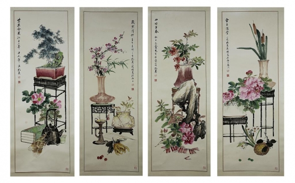 SET OF FOUR CHINESE SCROLL PAINTINGS