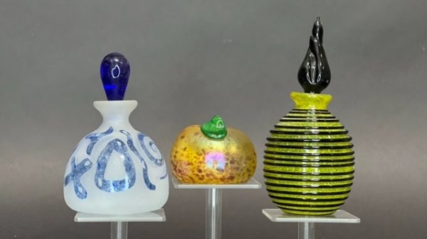 SET OF THREE GLASS BOTTLES