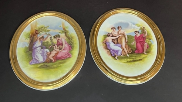 SET OF TWO ROUND PLAQUES IN GILDED FRAMES