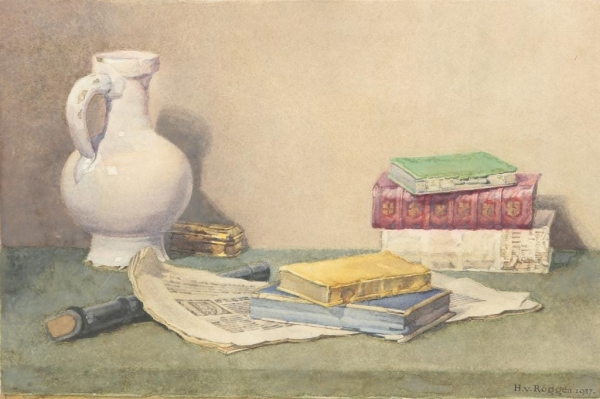 STILL LIFE WATERCOLOR PAINTING BY H.V. ROGGEN 1937